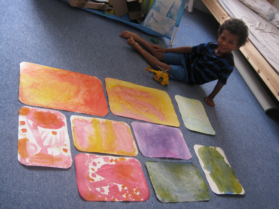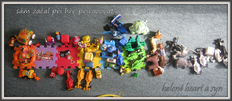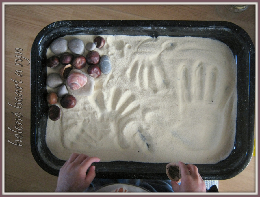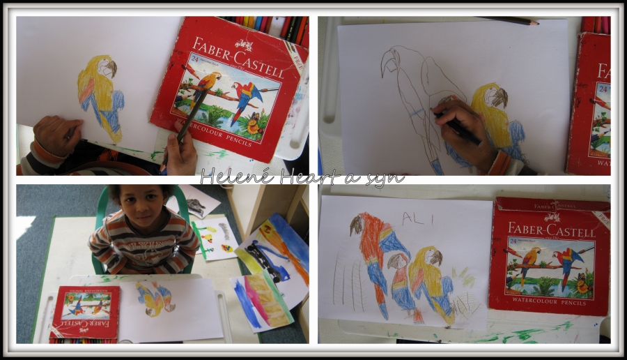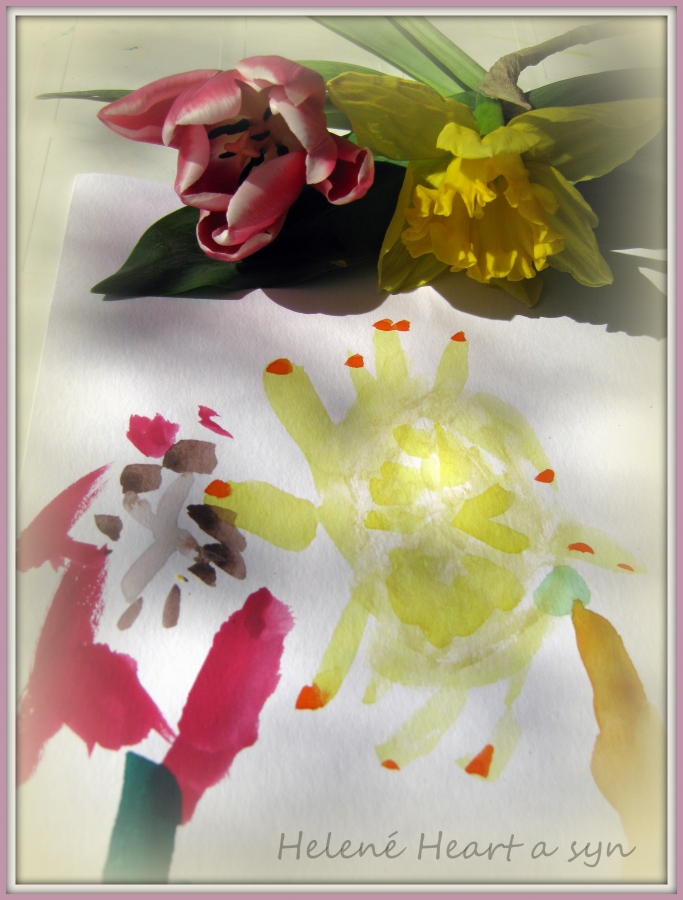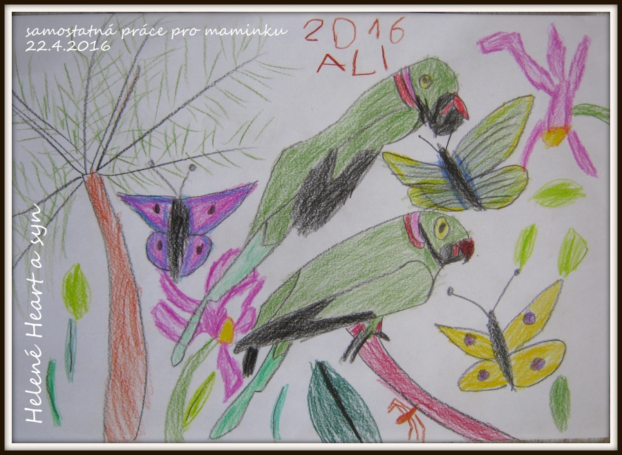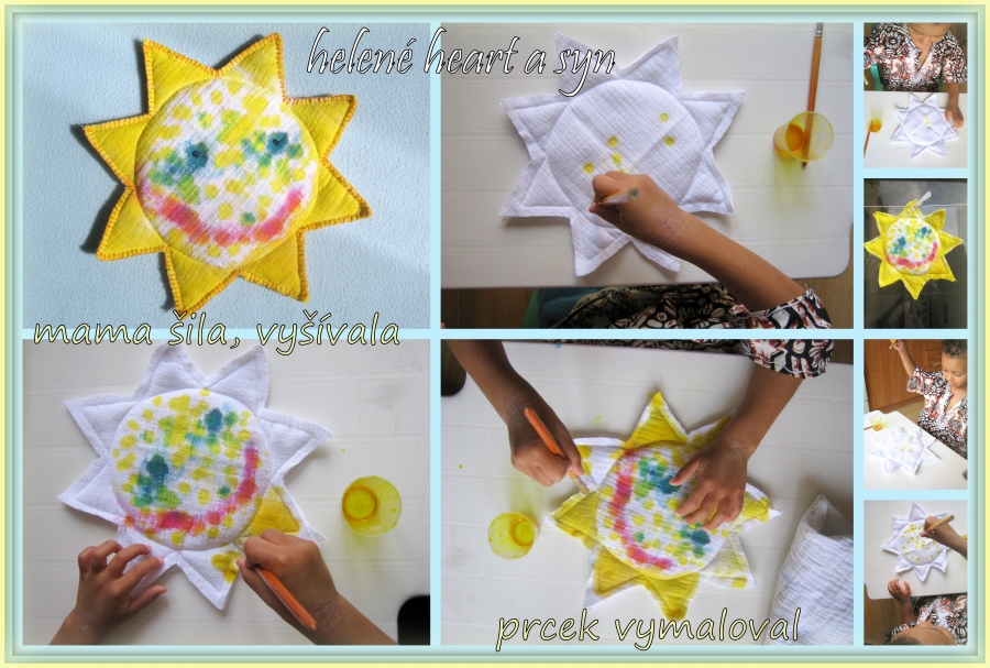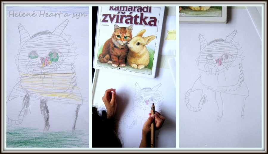 Syn je hodně hrrr a poněkud hyper a udržet ho někde na židli je výkon, avšak tvoření mu dělá radost :-) dnes už dokáže sám namalovat pastelkama třeba sluníčko, tátu, auto...