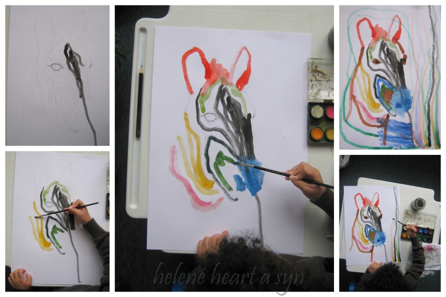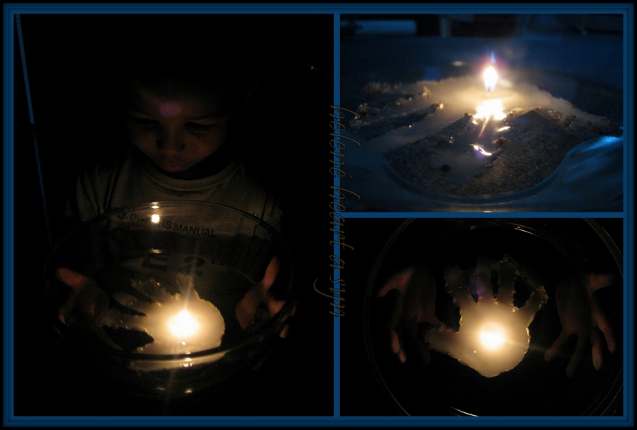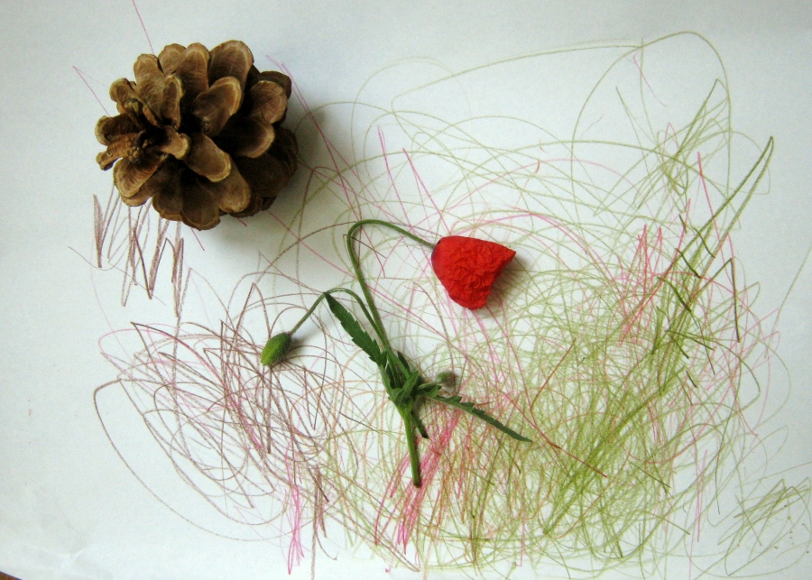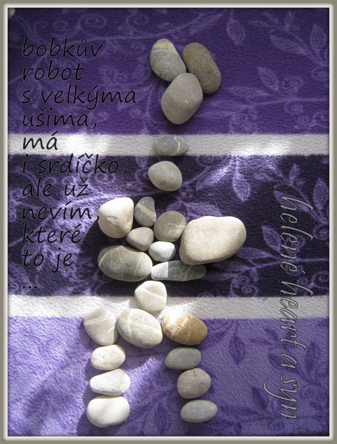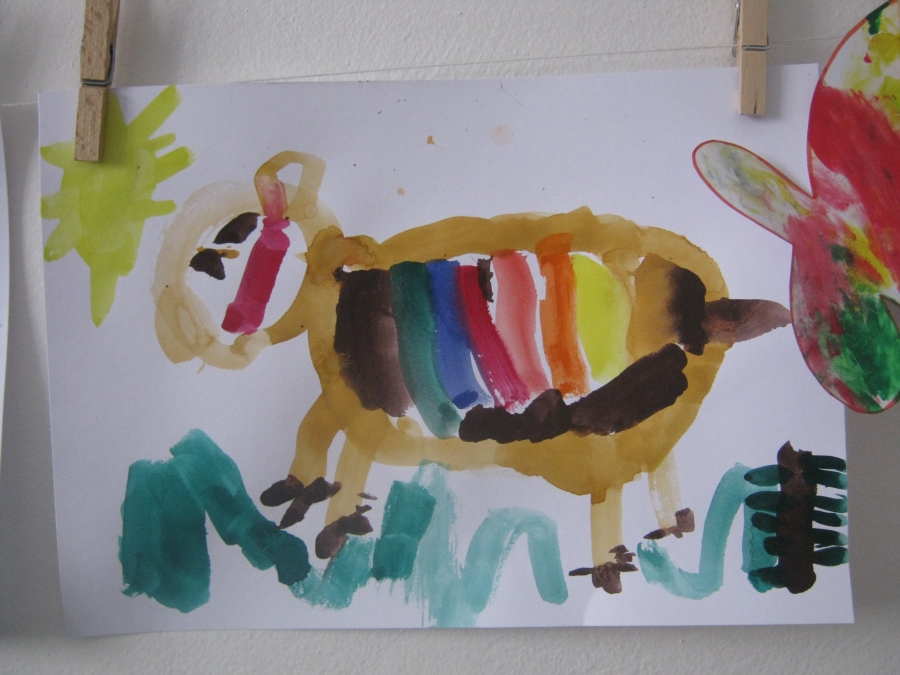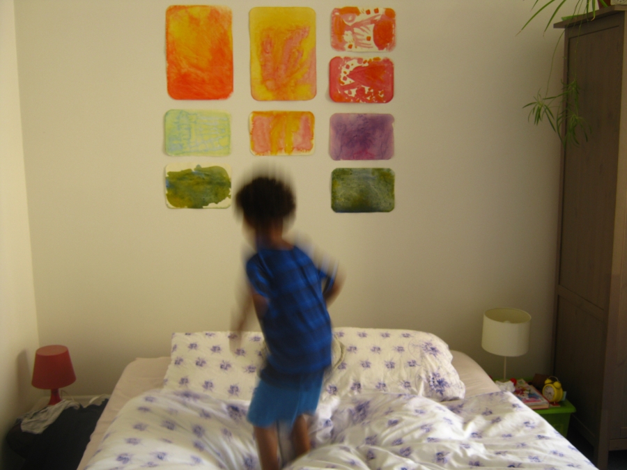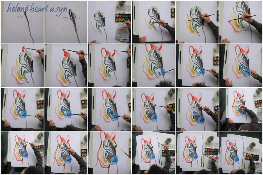 Syn je hodně hrrr a poněkud hyper a udržet ho někde na židli je výkon, avšak tvoření mu dělá radost :-) dnes už dokáže sám namalovat pastelkama třeba sluníčko, tátu, auto...