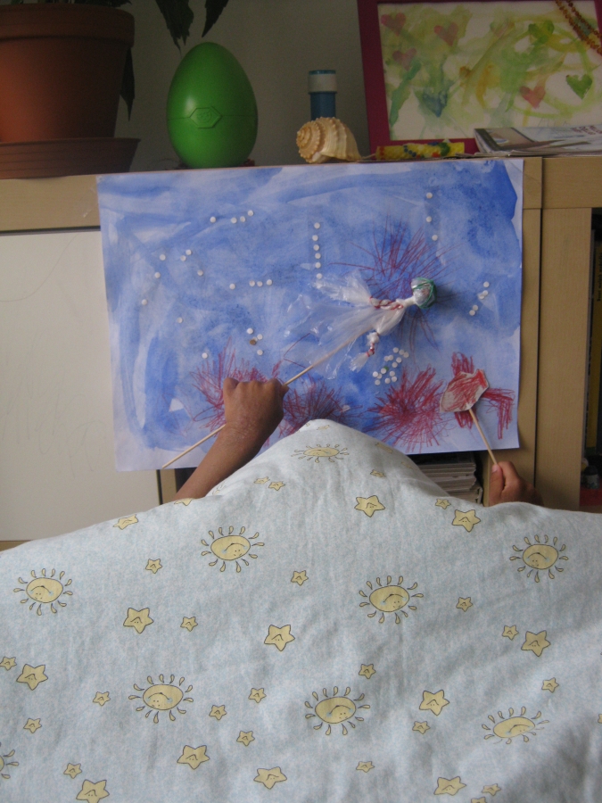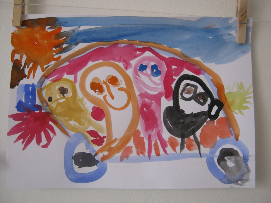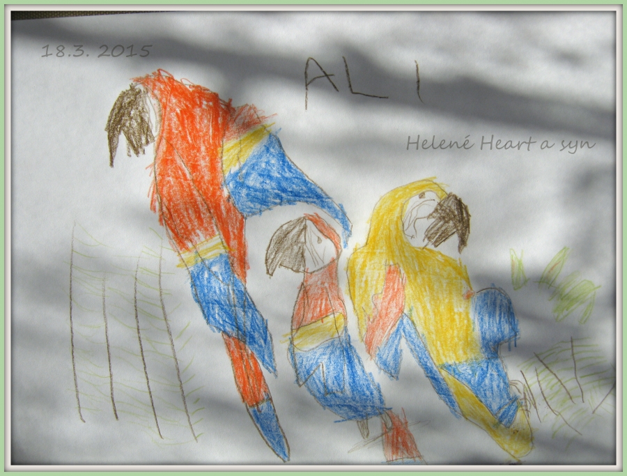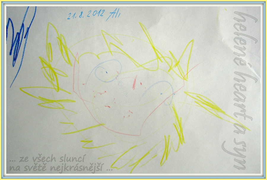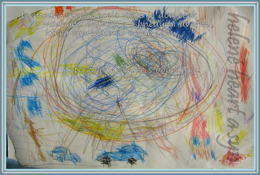Několik dětských obrázků zde, jsou dílka vytvořená synem, zatím stále s mou pomocí - zejména vedením, kam má co udělat... avšak často mu nechávám volnou ruku, aby si sám určil, co, kam, v jaké barvě... ;-)