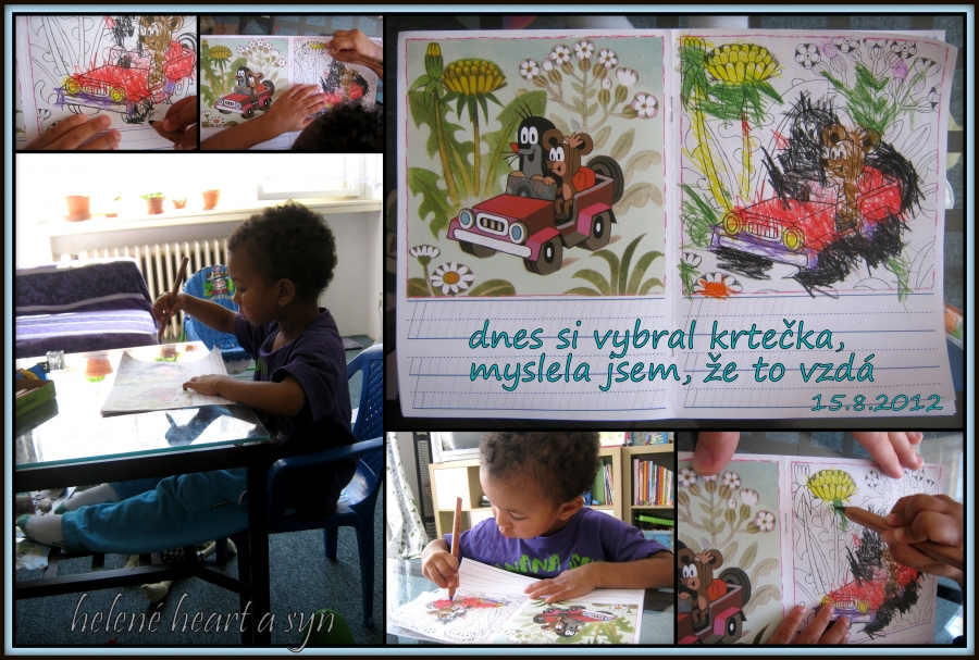 Když jsme začínali s pastelkama, nejvíc ho bavilo, když jsme malovali spolu na jeden papír :-) je to moc fajn, povídáme si spolu o obrázku, barvy volí převážně syn a já maluji to, co on ještě neumí :-) (bo mu s tím pomáhám, vedu ho, ukazuji)